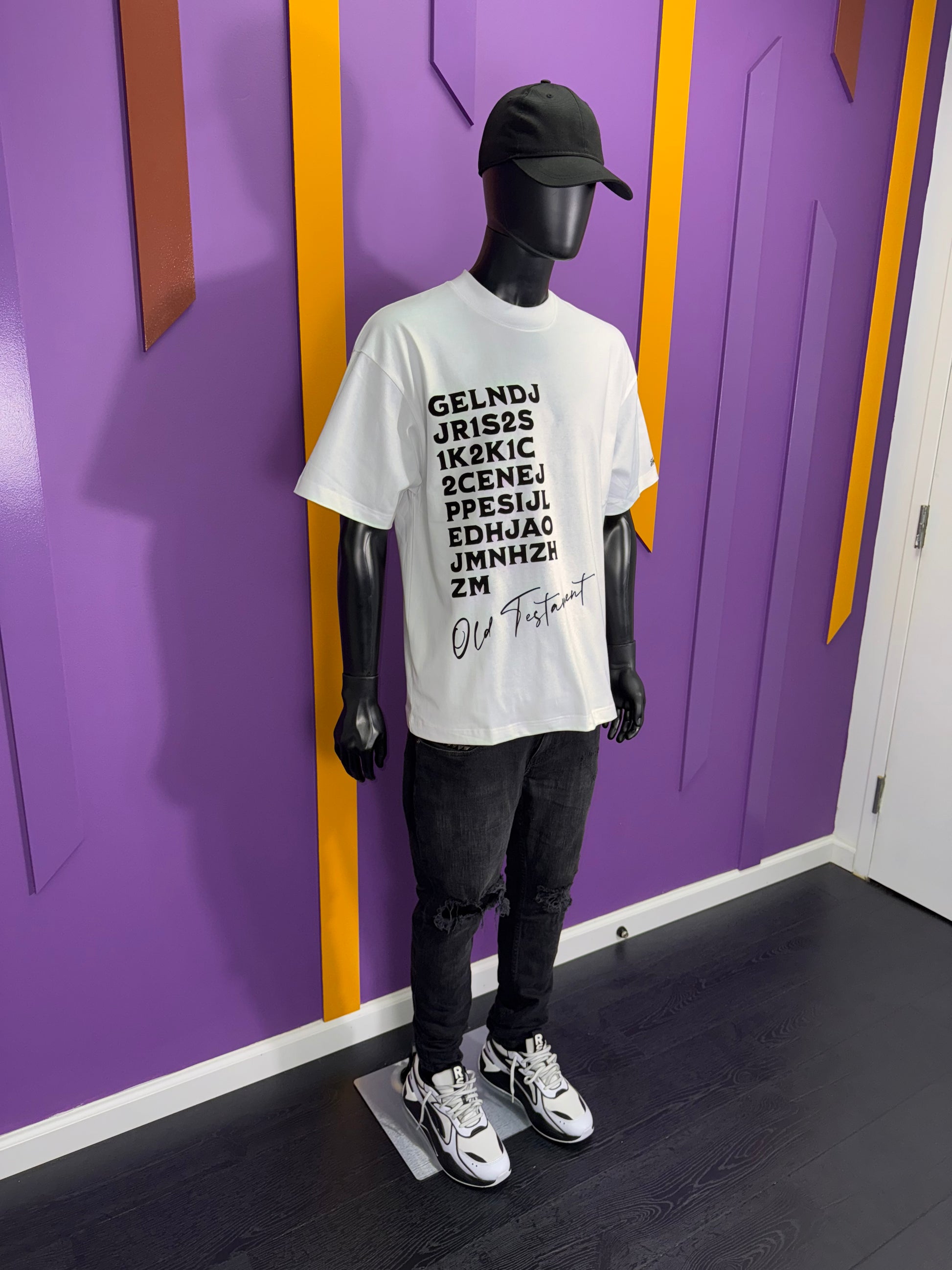 Rep your faith boldly with a tee that speaks volumes literally. This powerful design showcases the entire Old Testament across the front and the New Testament on the back, making it a wearable statement of scripture from Genesis to Revelation.